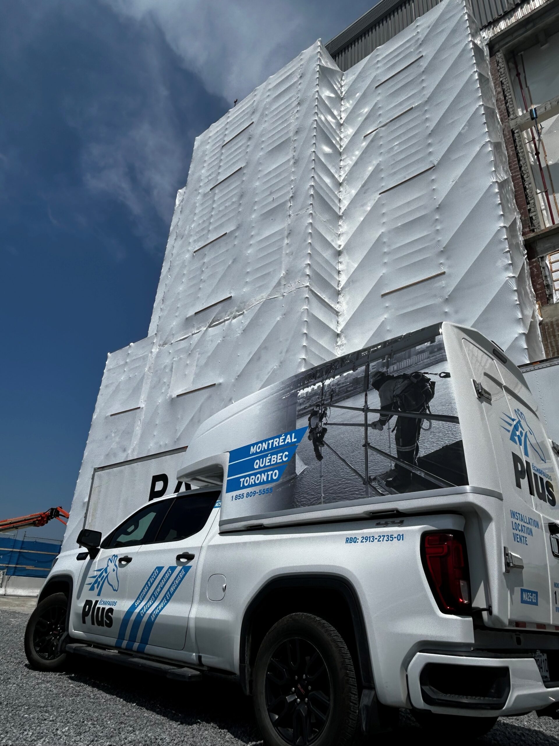 Installer une toile sur un échafaudage exige une étude technique pour éviter les surcharges et garantir la conformité à la norme CSA Z797-18. Même des vents légers peuvent produire un effet parachute en s’infiltrant dans une structure toilée, compromettant la sécurité des équipes et la stabilité de la structure.